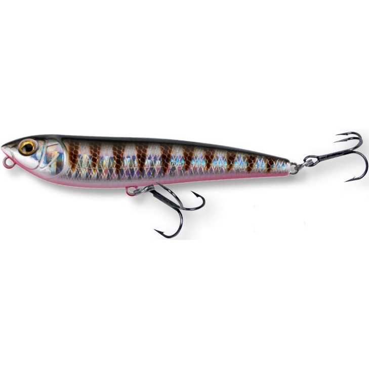 Modell "Skid" ist Wobbler ohne Lippe, gedacht für das Jerk-Angeln. Hiermit werden wir der ständig steigenden Art von Anglern gerecht, die es bevorzugen, an der Oberfläche auf große Räuber zu fischen. Sicherlich haben Sie schon oft fantastische Hecht- oder Barschraubzüge an der Oberfläche beobachtet. Ein atemberaubender Anblick! Aufgrund ihrer besonderen Bauart stellen sich diese Köder nach Auftreffen auf der Wasseroberfläche dort vertikal ab. Auf Zug sinken sie nicht ab, sondern durchschneiden die Wasseroberfläche und brechen dabei ständig nach links und rechts aus. Der Lockreiz auf den Räuber ist dabei enorm. Dieser Köder eignet sich für das Fischen an ruhiger, glatter Wasseroberfläche.
