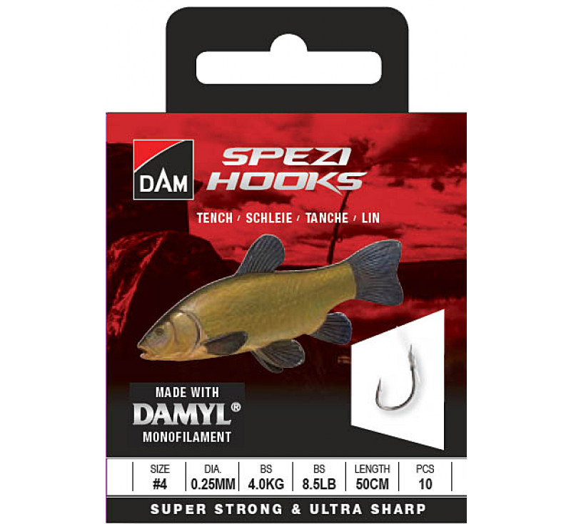 Für jede beliebte Fischart, Angelmethode oder Köder haben wir das ideale Vorfach zusammengestellt. Wir haben das geeignetste Hakenmodell und die passende monofile Tectan Damyl Superior Schnur in der idealen Länge für jedes Vorfach verwendet. Jedes Modell ist in verschiedenen Größen erhältlich. Der Einfachheit halber haben wir ein Bild der Zielfischart oder der Angelmethode oder des Köders auf die Verpackung gedruckt