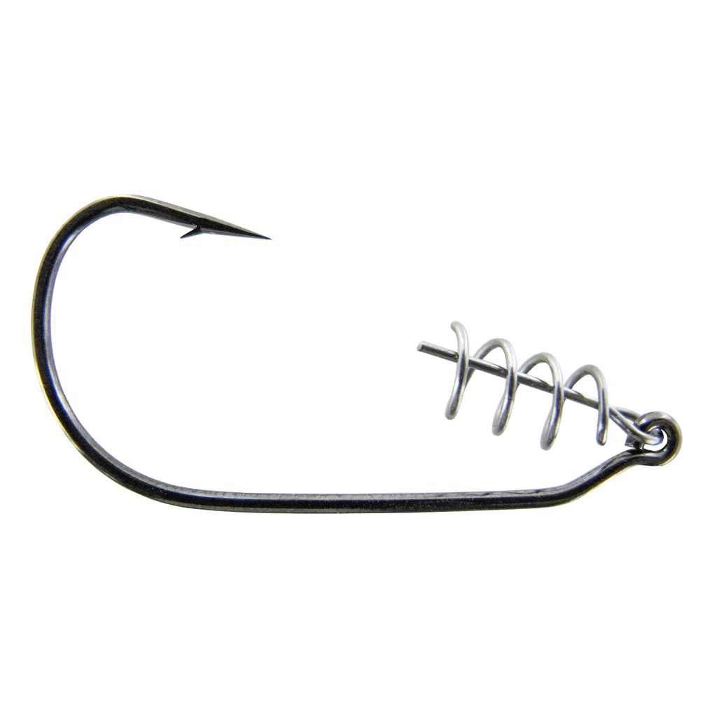 Offset-Hook mit Spirale Besonderheit: Diese Offset-Haken verfügen neben einer großen Öse über eine Spirale (Bait-Screw). Die Spirale dient zur Befestigung des Gummiköders. Hierdurch kann der Köder noch beweglicher und flexibler präsentiert sowie Fehlbisse minimiert werden. Je nach Hakengröße ist die Spirale unterschiedlich lang. Auch ideal geeignet zum Swimbaitangeln.