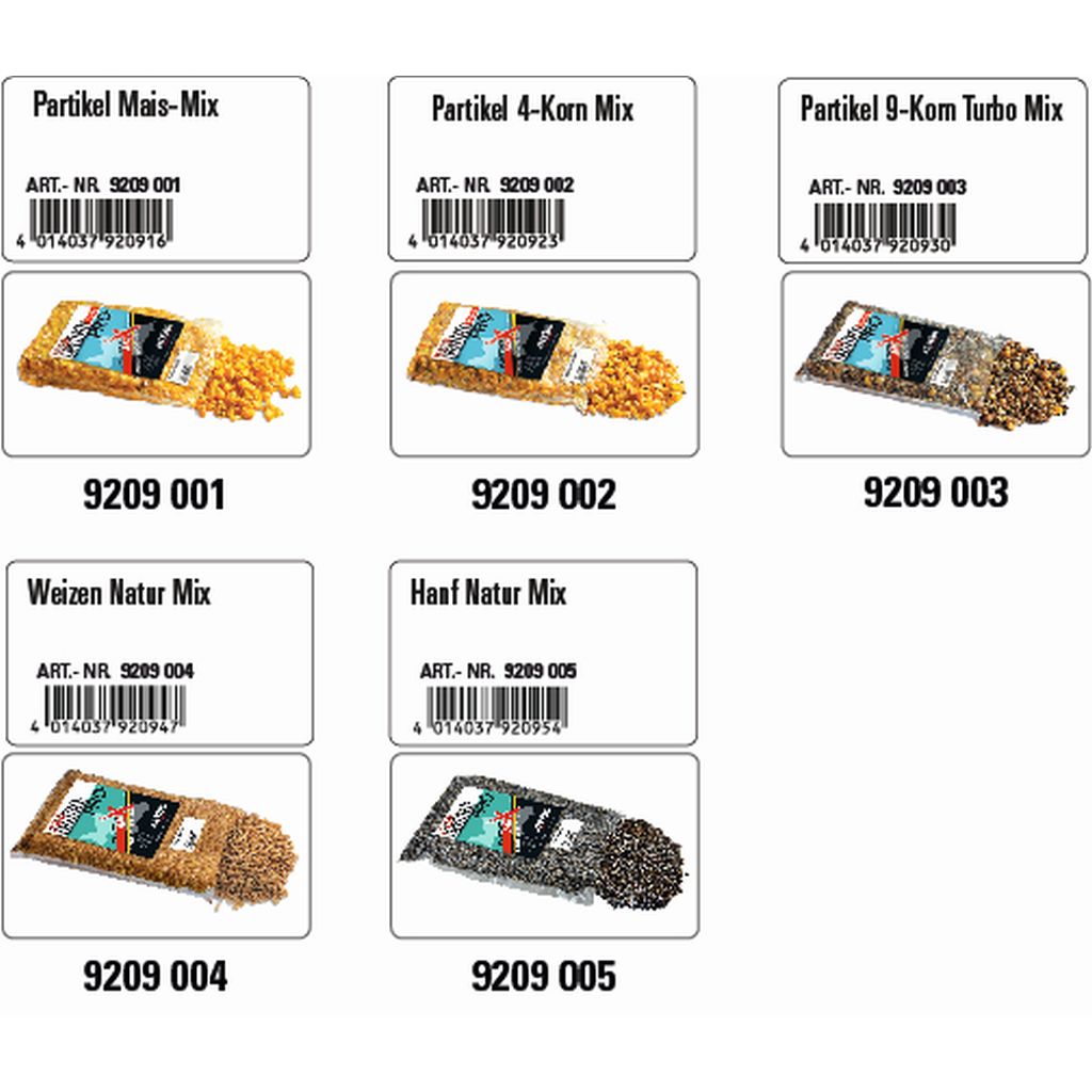 Die bereits gekochten und vakuumierten Partikel sind Ready to Fish. Sie können dem Grundfutter beigemischt oder auch einzeln gefüttert werden. Der Mais lässt sich auch direkt als Hakenköder verwenden.