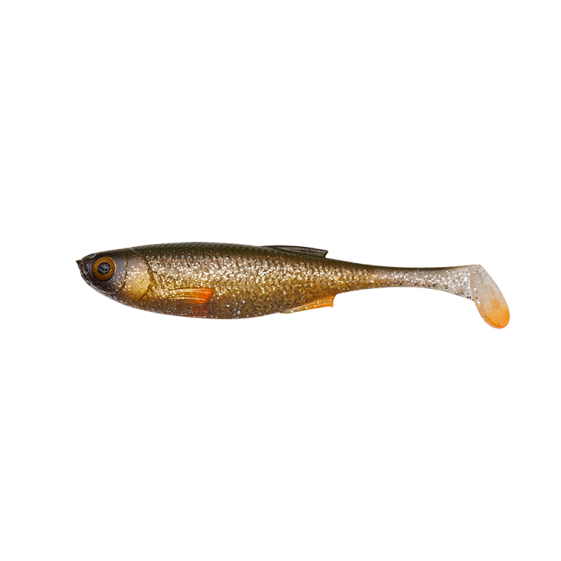 Wenn man in die großen, realistischen, weichen Augen des Craft Shads blickt, könnte man meinen, es handelt sich um einen echten Ukelei. In der Tat findet der Köder seinen Ursprung in diesem Fisch und viele komplexe Details wurden auf diesen Köder detailgetreu übertragen. Ein spezielles Feature ist die lange, schlanke Schwanzbrücke und der T-förmige Schwanz, der im Wasser eine druckvoll schlagende Schwanzbewegung beim Einholen und Absinken erzeugt. Der schlanke Körper des Köders macht ihn perfekt für das Fischen in der Tiefe oder in der Strömung. Die handgefertigten Details und die Handbemalung des Craft Shads setzen neue Maßstäbe in der Softköder-Entwicklung.